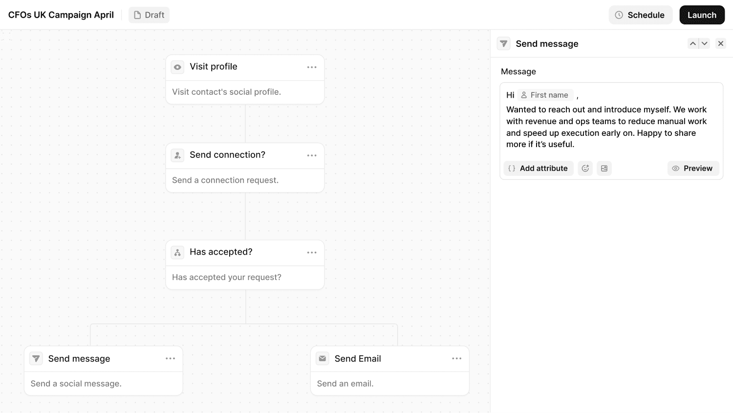 Condition-based sequences across email and social media.